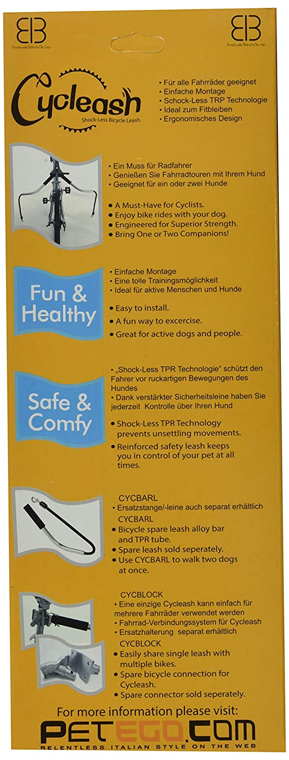 A must-have for cyclists, the Cycleash is the most advanced bicycle leash on the market. The Cycleash is the safest way to exercise your dog, so don’t risk riding your bike while holding your dog’s leash in your hand, gain full control of your bike and enjoy your shock-less ride in total safety! recommended for reasonably well-trained dogs over 35lbs. .